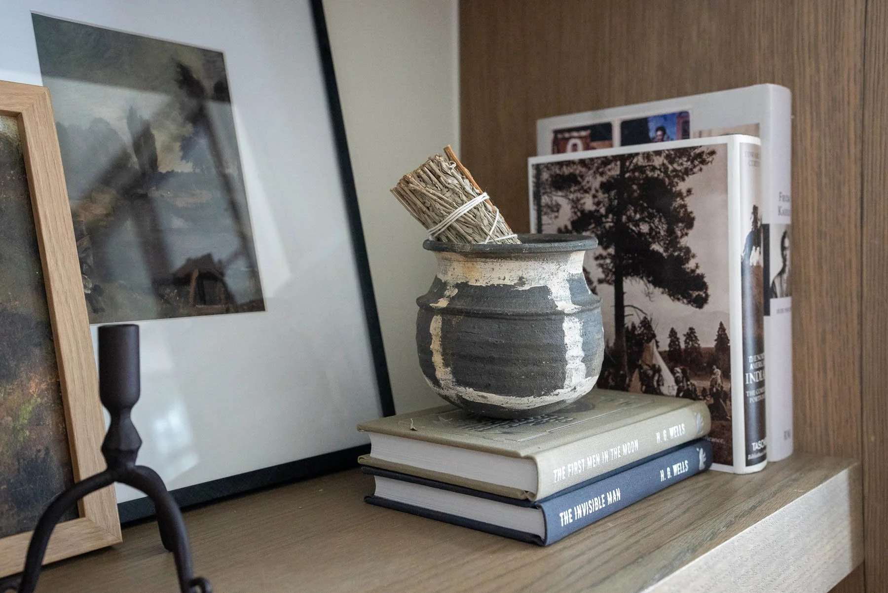 A well–styled shelf should feel effortless, collected over time, and uniquely yours. Mixing art, natural elements, vintage finds, and personal touches will give you that timeless, layered look that feels curated rather than decorated.